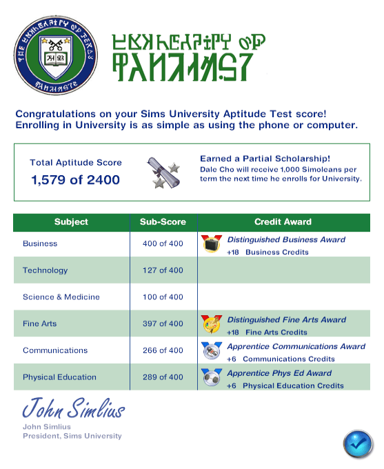 Dale has finished his aptitude test, here are the results: