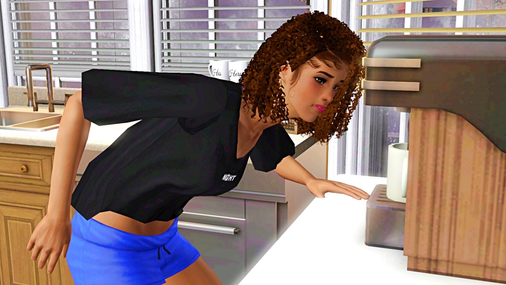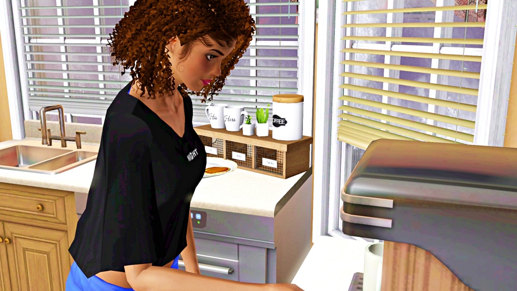 Before getting dressed to go to class, Kelly returned to the kitchen to make herself a cup of coffee.