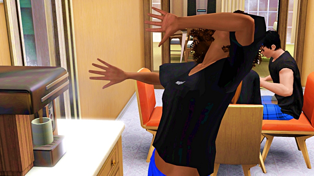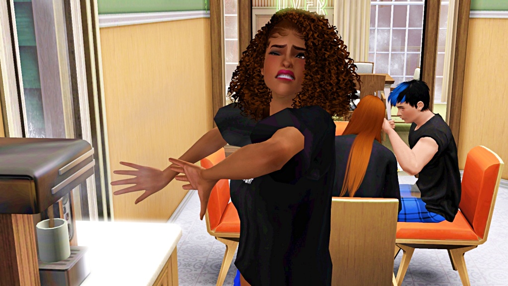 Good thing the hot steam didn’t touch Kelly’s face. So much for a cup of coffee before going to class. 🙄