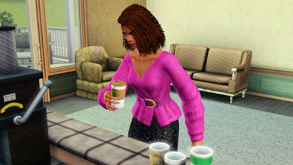 Kelly’s pretext for keeping an eye on Dale will be another coffee. She’s already had one and is more than satisfied, but…. Well, she won’t really have to drink this one too, just take it and go sit at the table with Dale and his new friend. So, Kelly goes back with Harvey the barista.