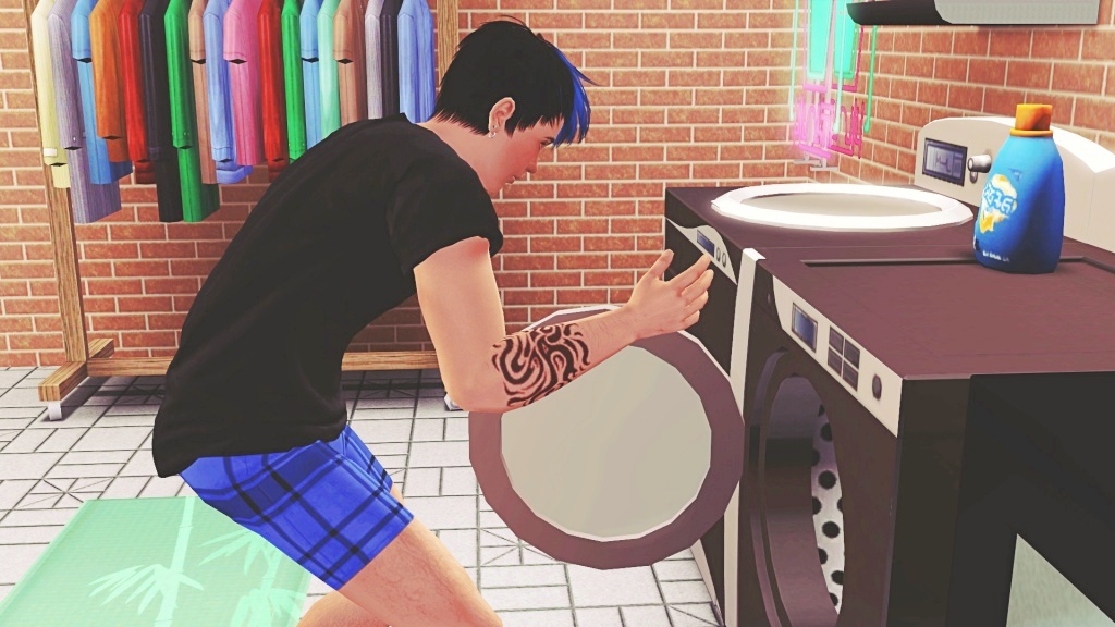 Early the next morning, Dale finishes the unfinished laundry from the night before.