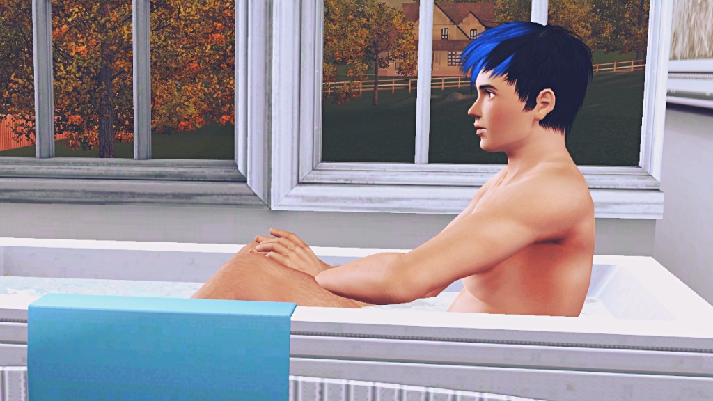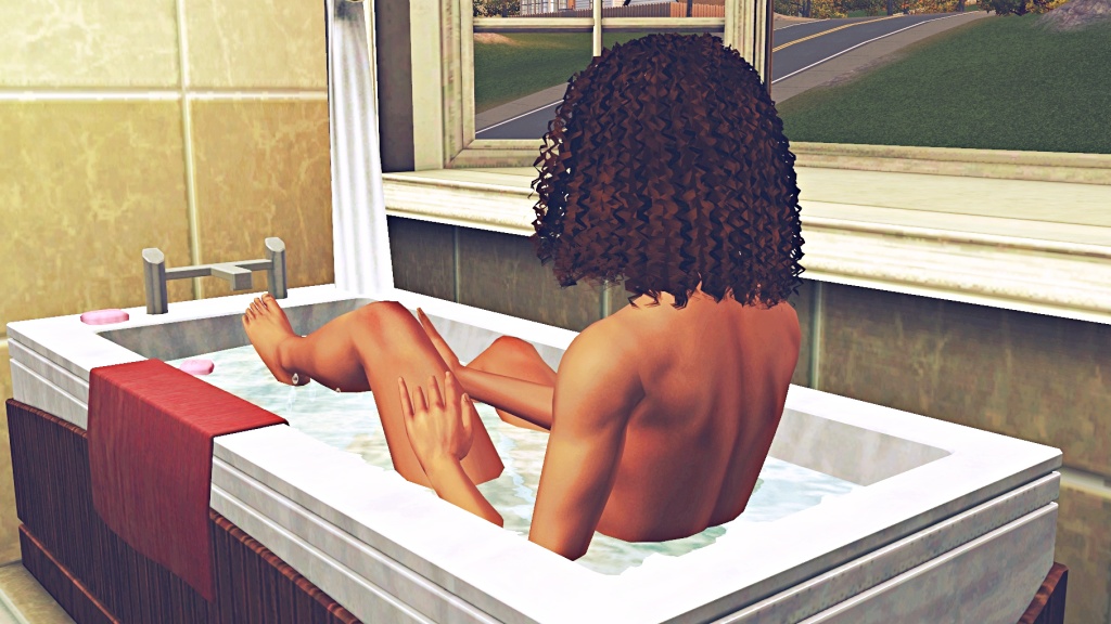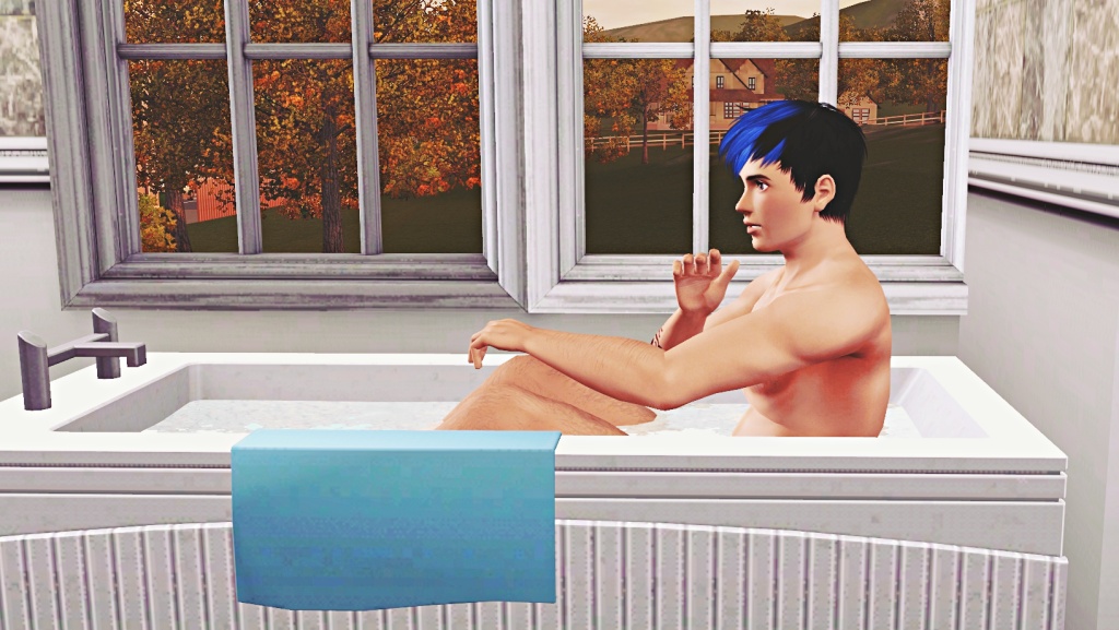 Dale and Kelly taking a quick bath before breakfast. The two in different bathrooms, you know, to save time. 😉