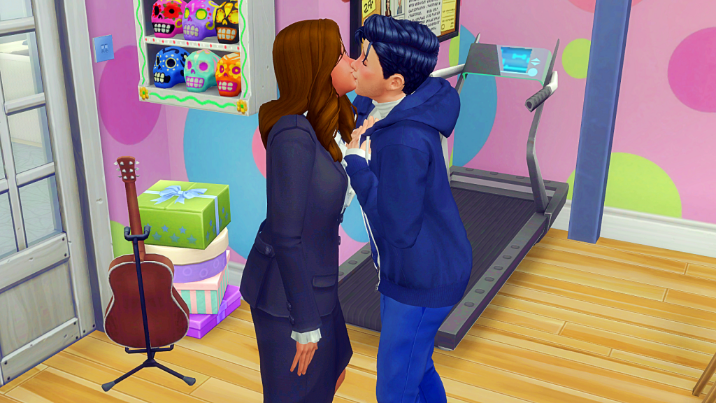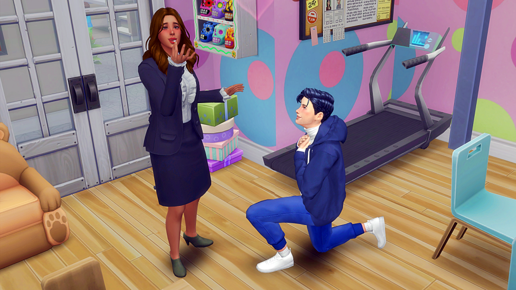 Zoe of course said yes. (Never mind they’re in the children’s playroom, she in her work uniform and he in sportswear).