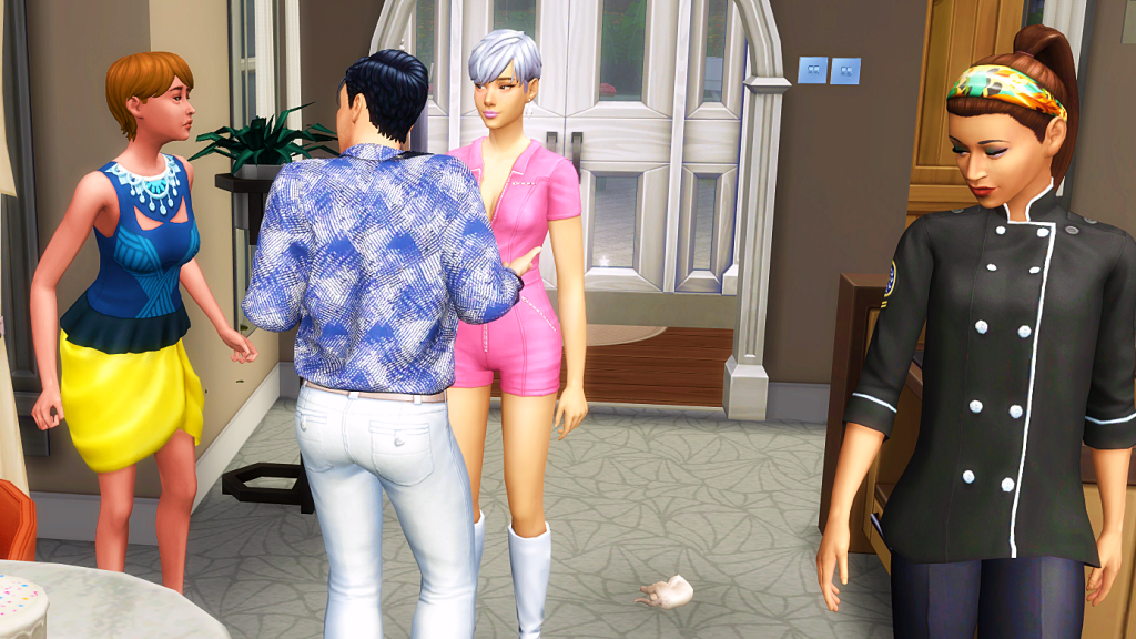 (Penny is such a lousy caterer, she left an unfinished meal on the table next to the cake. Typical sims! 😄)