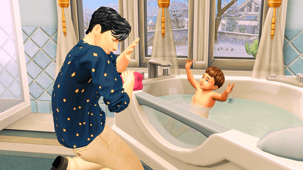 The next day, since Zoe had to leave for work, and Allan was a few hours early for his, he volunteered to take care of the children. This was the first time Allan was left completely alone with his kids, he didn’t do too bad, he was even able to give Zeke a bath, they both had a great time!
