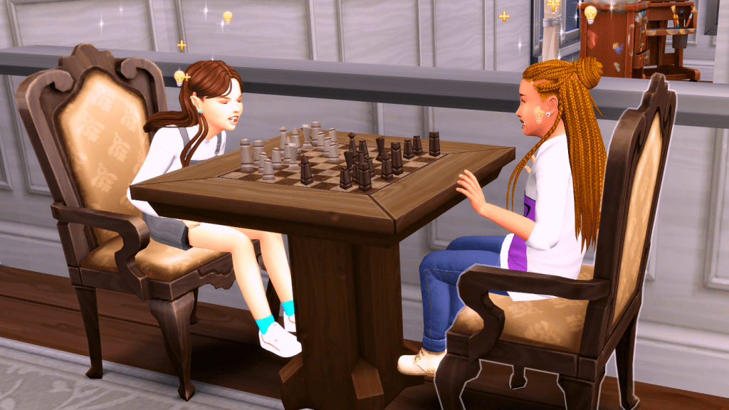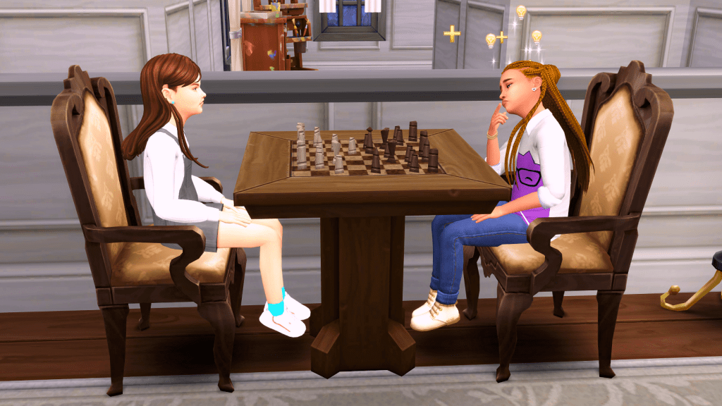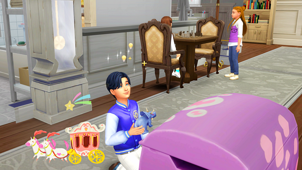 Oh no these girls are fighting again over a chess match, thinks Lukas, as he has fun playing with the toy chest. His sisters may earn logic points by playing chess, but Lukas improves his imagination skill by playing with his toys. Maybe in the future he’ll become a writer, or an actor like his dad.