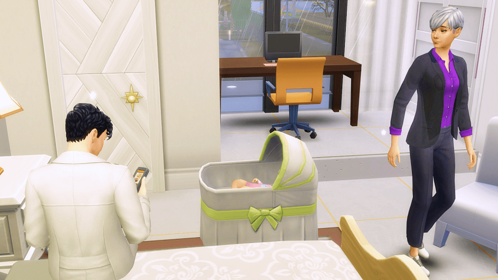 For now, she’s exhausted, all she wants to do is get some sleep. Allan assures her there’s no problem, he got this. Of course, with four children in his care, he must be an expert already.
