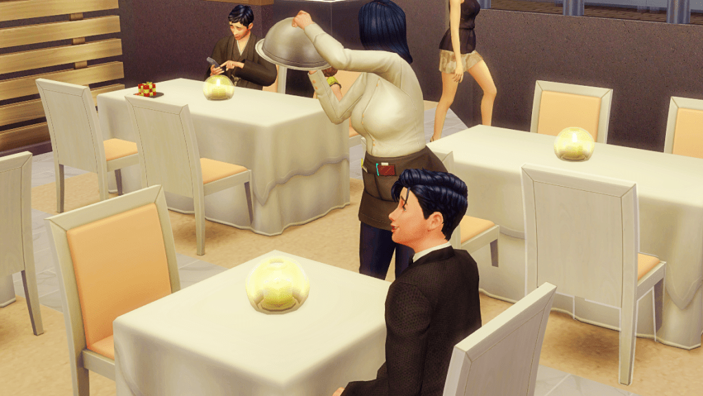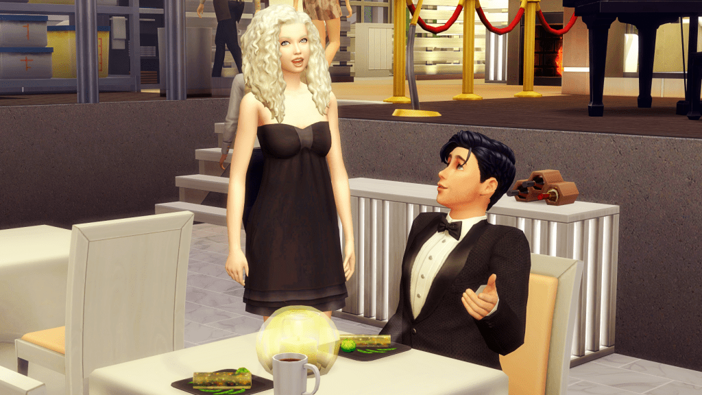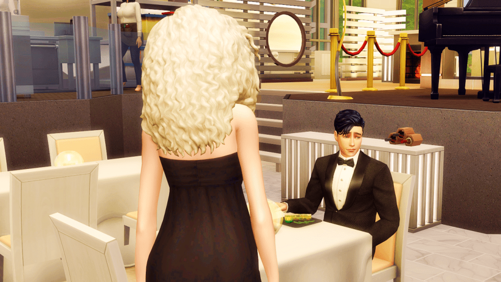 Bella also excused herself to go to the restroom; now she’s the one taking her time. Allan has started to feel a little lost, when the waitress (finally) arrives with the food.