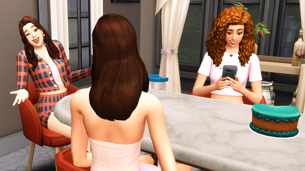 While Anika catches up with their friend Luna, Kennedy checks the Social Bunny app to see if everyone has seen her sister’s picture yet.