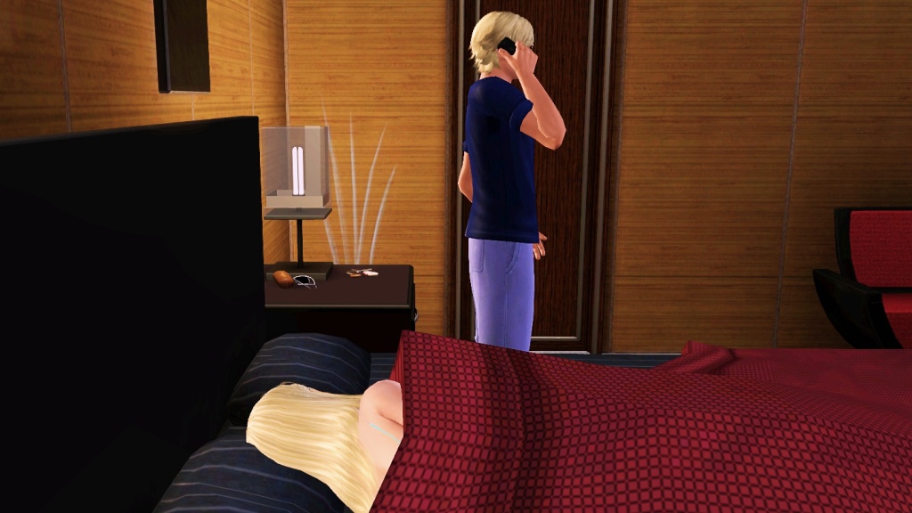 But the ringing of his cell phone on the nightstand woke him up and made him sit up.