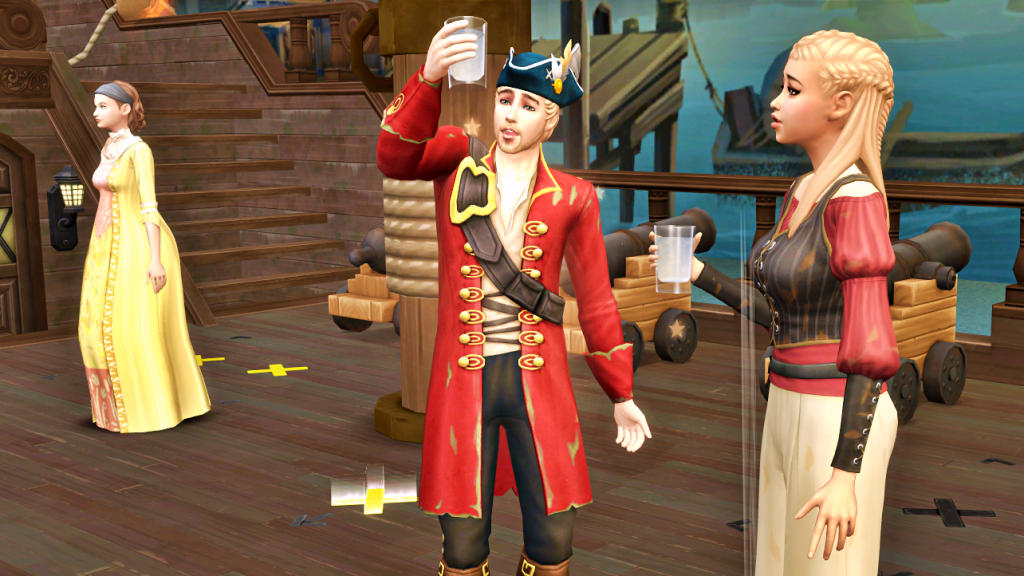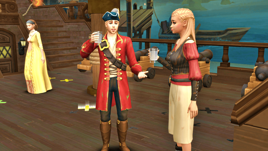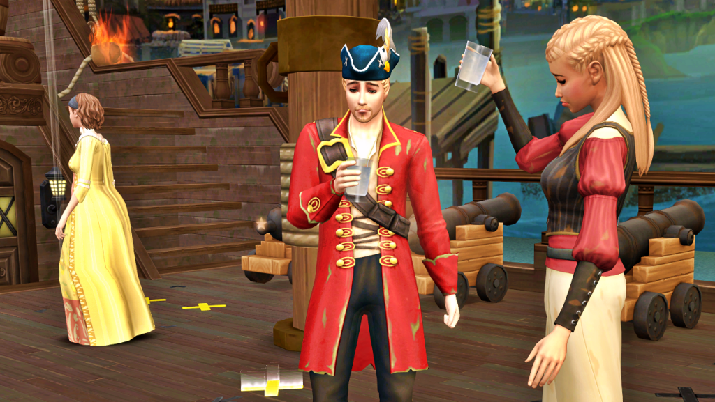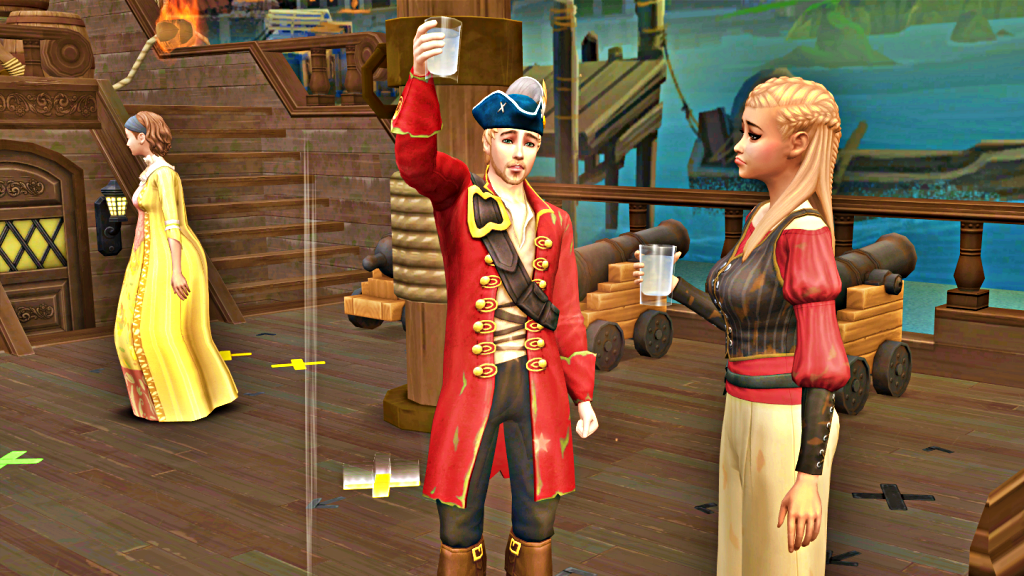 Seeing that Lydia raises her glass, but seems hesitant to drink, Captain Rainstorm looks into his own, as if suspecting something. Pirate Yellow walks away; her grim mission is almost over.