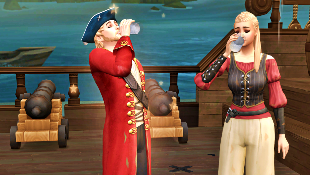 After defeating Pirate Yellow, Captain Rainstorm proposes a toast to his beloved girlfriend, Pirate Lydia.