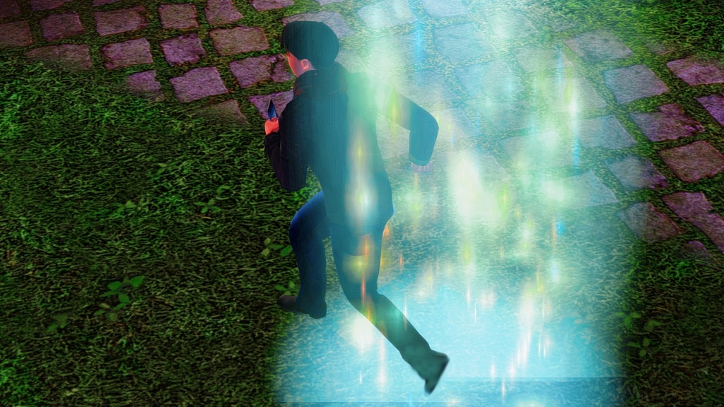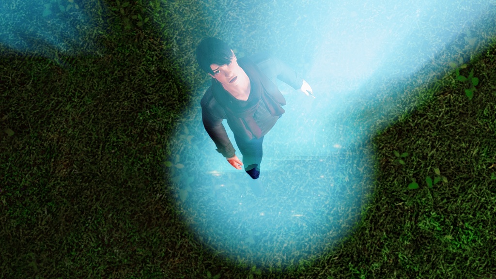 The formerly harmless lights, then transformed into a bright, greenish beam, which, emitting a whirring sound like that of a powerful turbine, descended upon Robin, enveloping him in a chilling glow.
