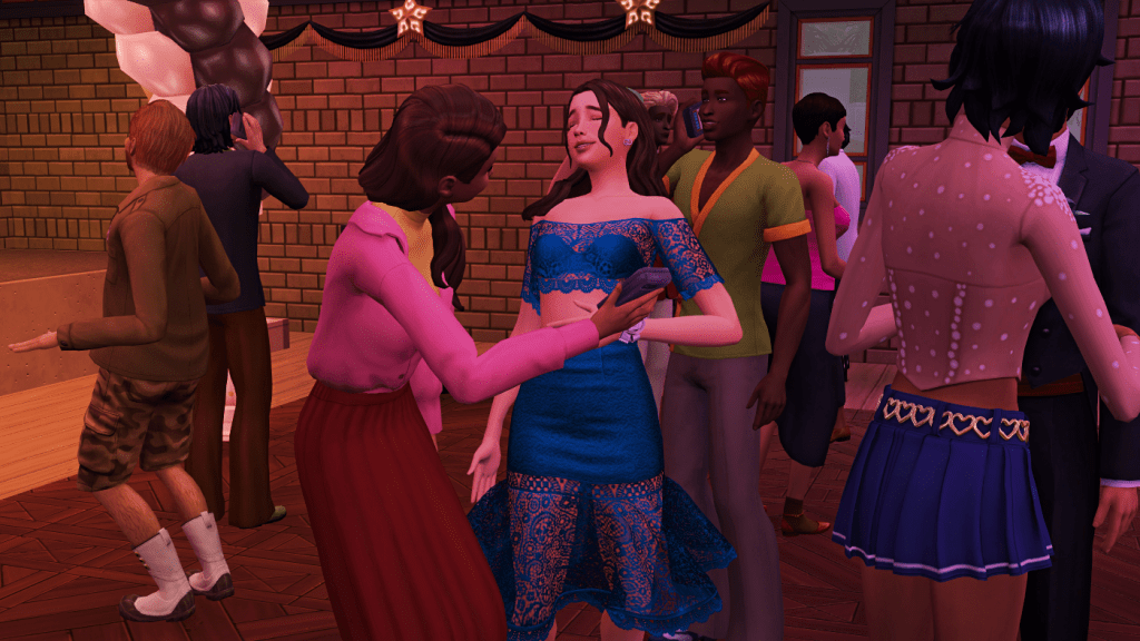 This was the first time my sims went to high school and the first time they attended the school dance too. Here we can see Kennedy with one of her classmates Otto Mendoza, and Mei Prescott, the principal of Copperdale High.