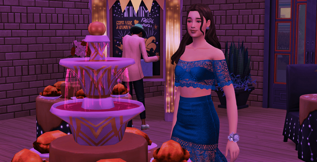 Anika comes over for some punch, she’s wearing her corsage on her wrist and this gorgeous outfit inspired on one of her mom’s favorite formal dresses. (It’s one of my favorite outfits too! 😉)