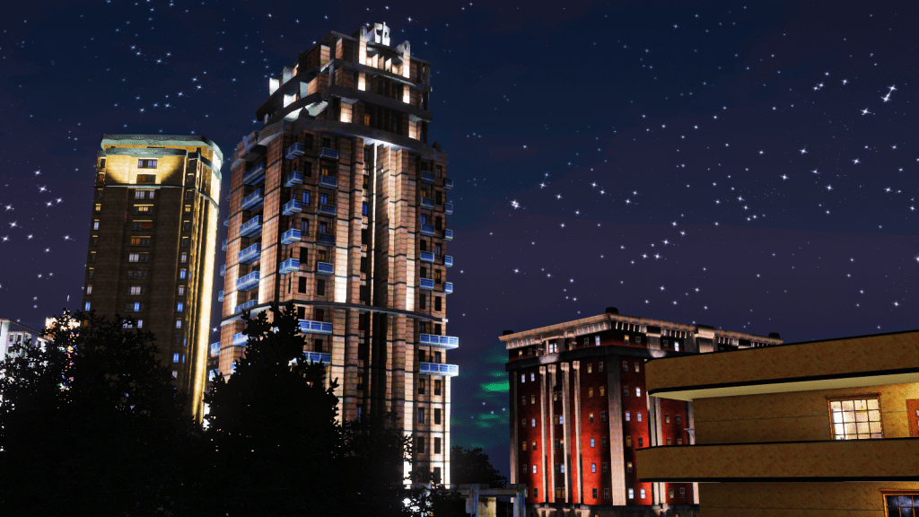Pat, in his old hairstyle, and some photos of the nocturnal scenery outside his apartment on Embarcadero Drive.