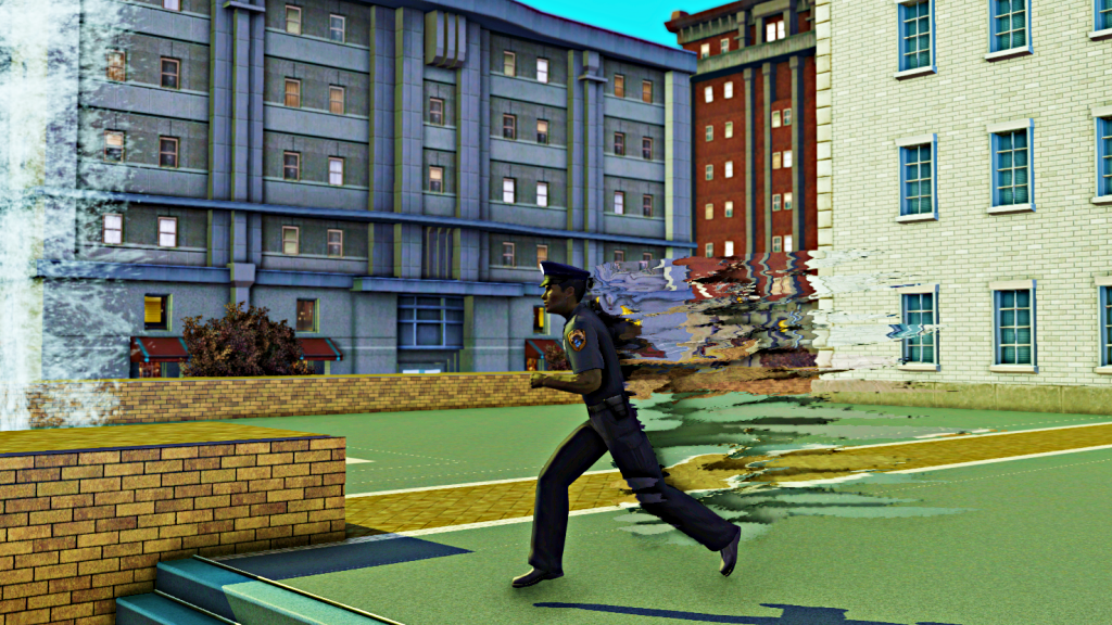 William Fangman running to the stairs. Can’t this vampire cop go slow? I guess not when it comes to protecting the innocent.