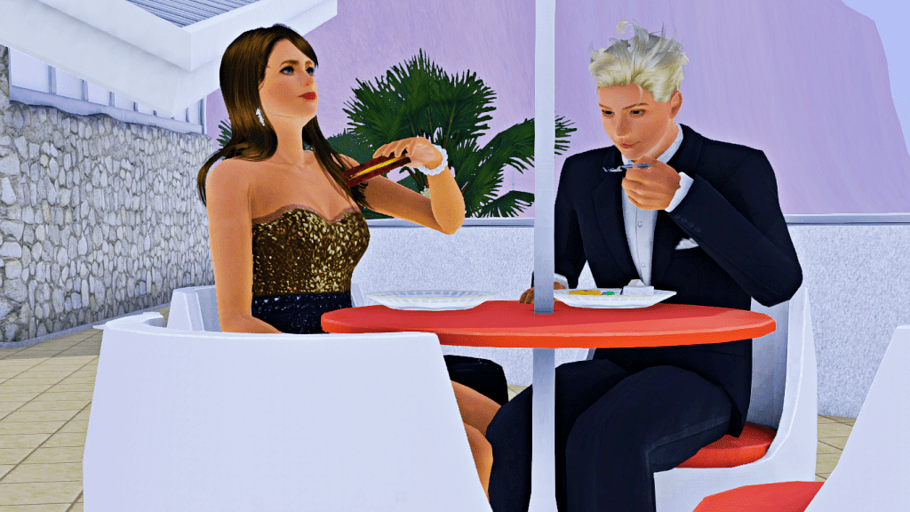 Cynthia and Terence have gone to lunch at the Blooming Cactus Bistro outside Lucky Palms.