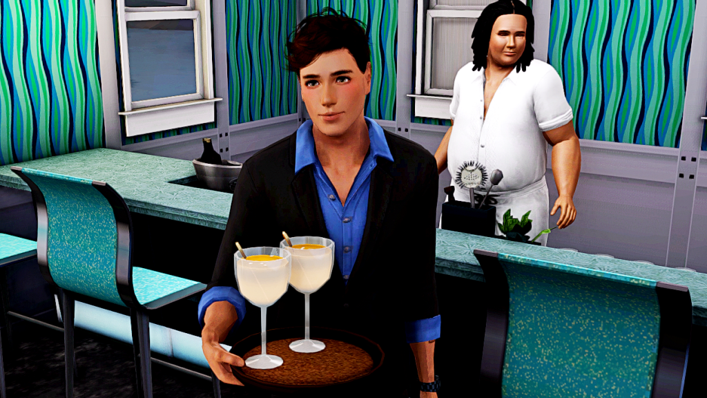 Tiara Angelista disappeared as quickly as she had arrived, (Jarod the mixologist still looks spellbound). Pat is disappointed that he didn’t get a chance to talk to her, but at least he was able to order drinks for him and Jun.