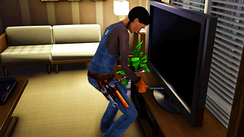 The repair turned out to be more difficult than she thought it would be, but the fee for middle-of-the-night emergencies is double, so those extra simoleons are well worth the trouble.