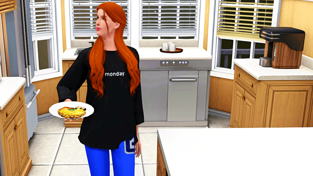 Sarah was the first to get up. Thank goodness there’s food in the fridge, no thanks to her, of course.
