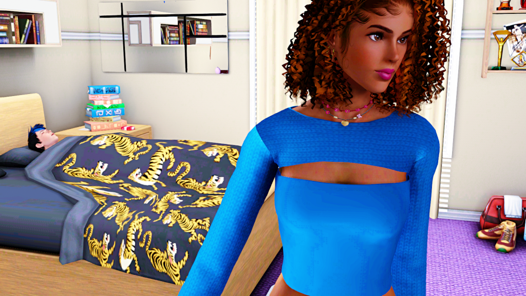Dale doesn’t have school in the morning, plus he is tired from the hustle and bustle with the repair girl last night, so he’s still asleep. Kelly had such a good night’s sleep, that she doesn’t mind waking up early. She doesn’t have classes either, but she needs a shower.