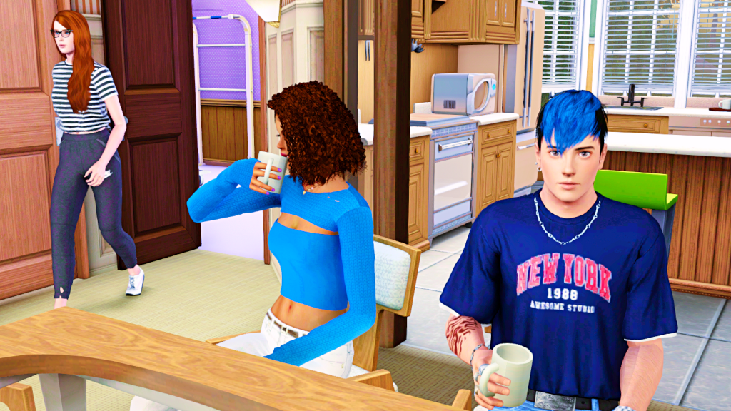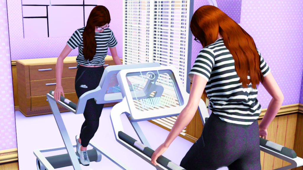 Sarah is getting dressed; Lauri is at the at-home gym, working out a bit. She probably wants to look her best for when she moves to Lucky Palms. Or is there any other reason? Or is there some other reason for her suddenly wanting to look good? 🤔