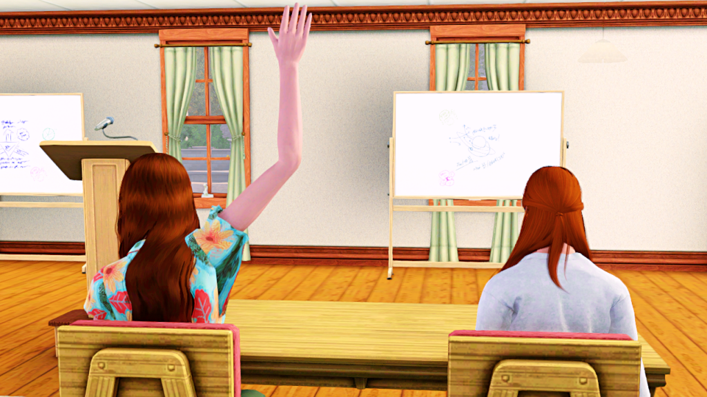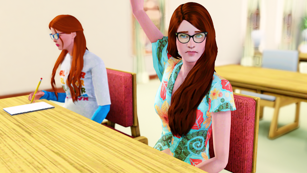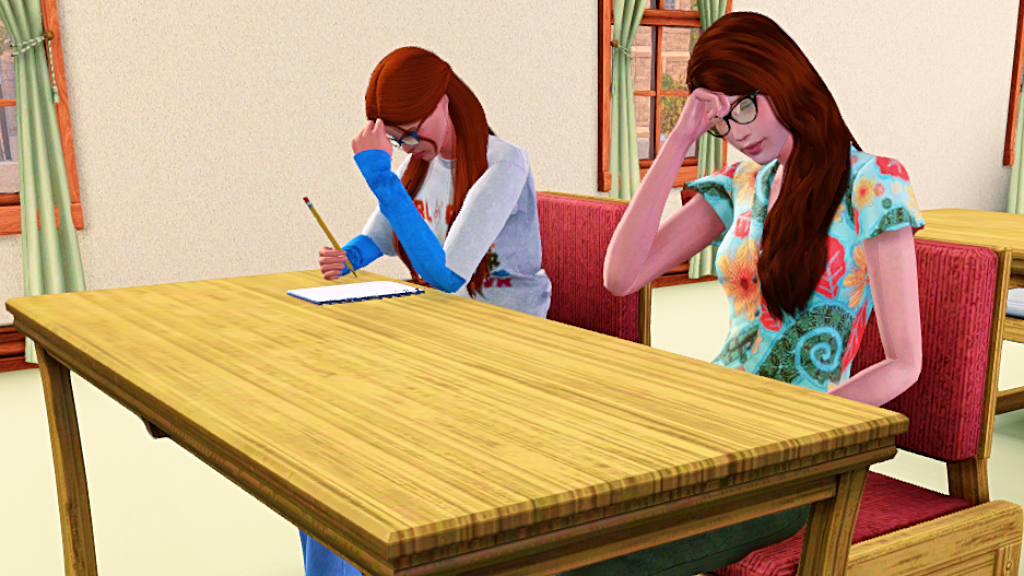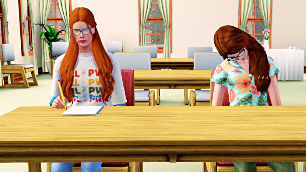 Sarah and Lauri are not having a good time at their lecture; they are so bored that Lauri even took a little nap.