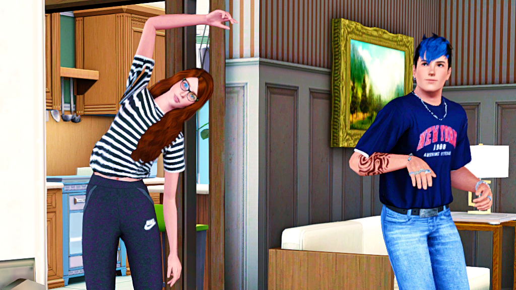 But the charm of the moment was broken, and Lauri no longer feels like working out, so she goes to the kitchen to get something to drink.