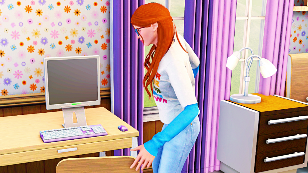 Sarah is about to sit down to play again, now in the comfort of her bedroom.
