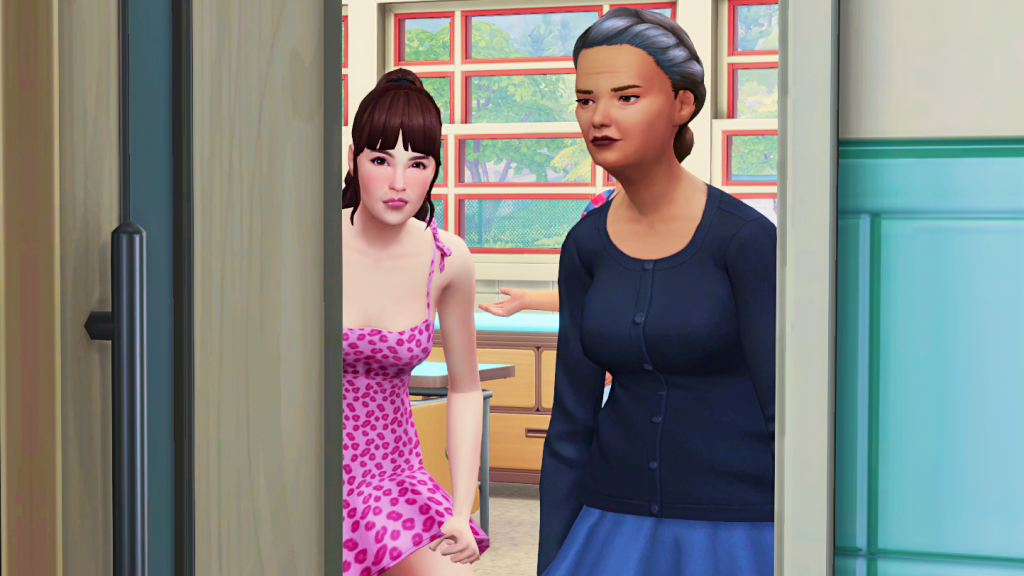 Apparently, Miss Coombes didn’t hear anything, because she doesn’t seem impressed – or maybe she’s just tired of the Wilsons’ antics. 😅