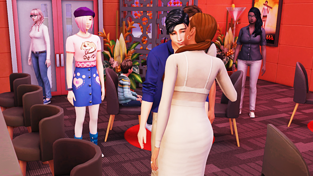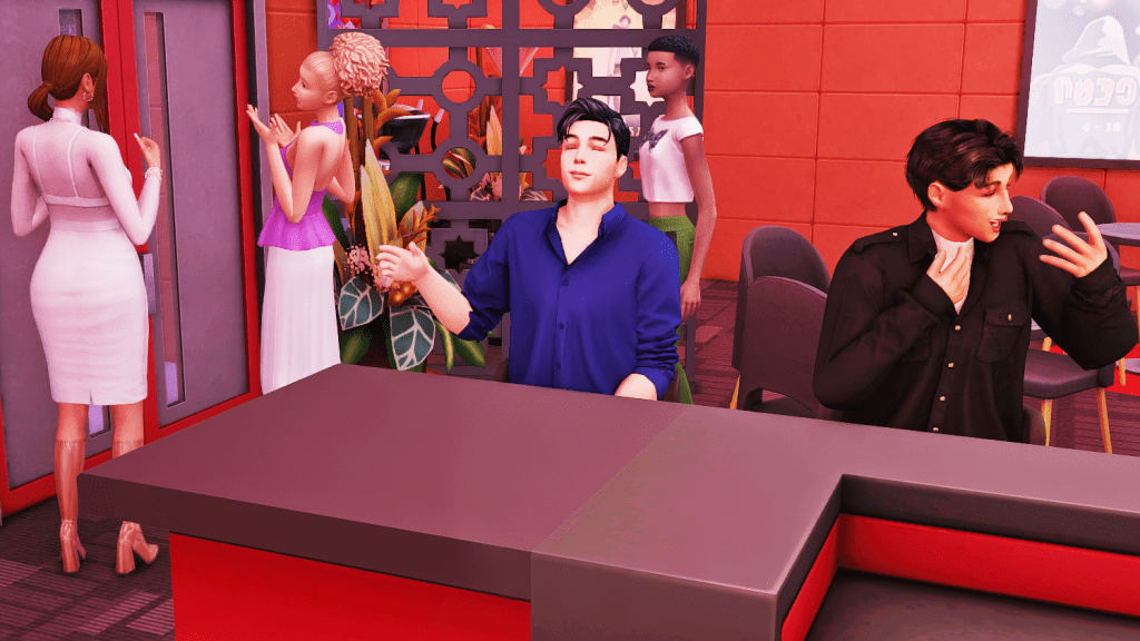 Returning from the restroom, and at Lucas insistence, Kennedy agrees to hang out with him, but she feels bad thinking she’s betraying her brother. (Meanwhile, at karaoke, another Allan fan is singing, who of course has copied his outfit). 😄