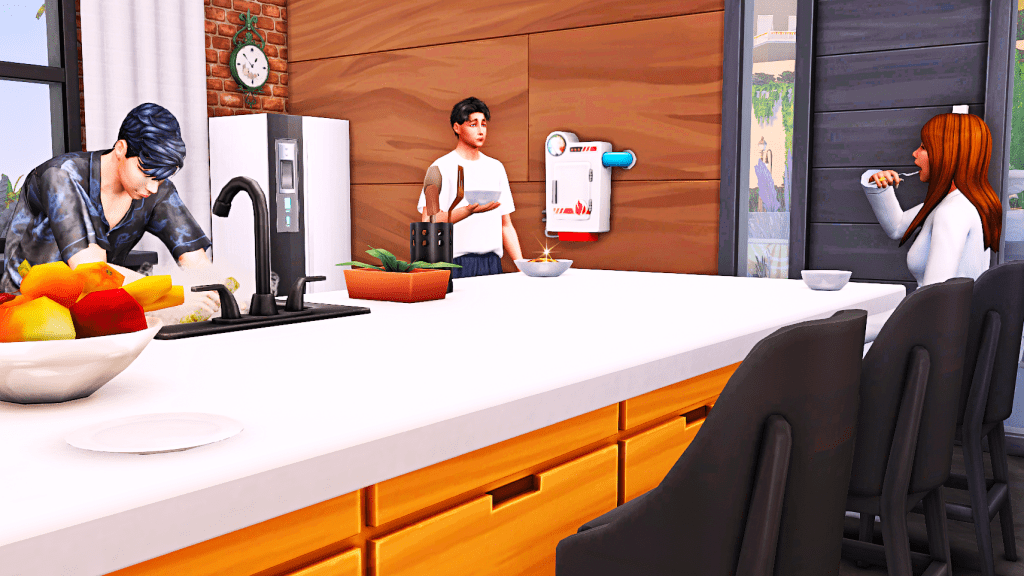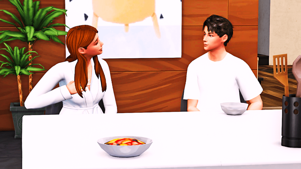 When she and Allan walk in the kitchen for breakfast, they find that Lukas has beaten them to it.