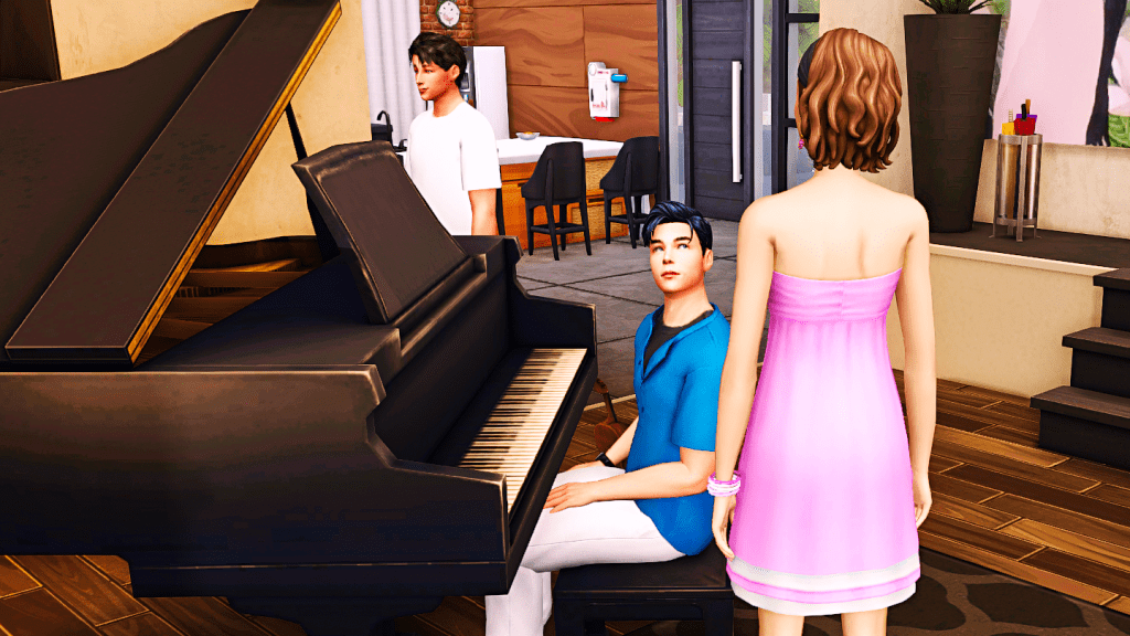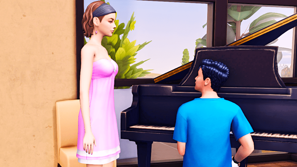 Marin is taking a while, so to kill time, Allan sits down at the piano.