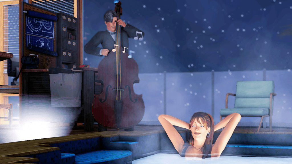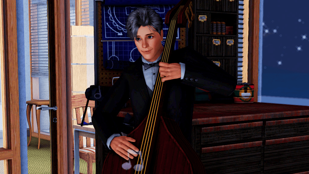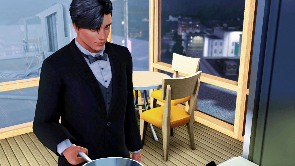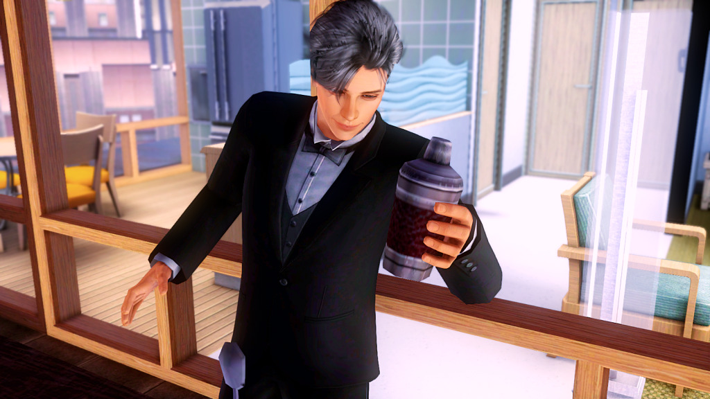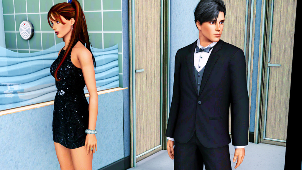 Roderick and Suzy, living the high life at their penthouse. At that time Roderick had covered his gray hair, so it looks slightly darker. Suzy had grown hers long and for some reason her skintone wasn’t the original one, I’ve since changed them both. 😊
