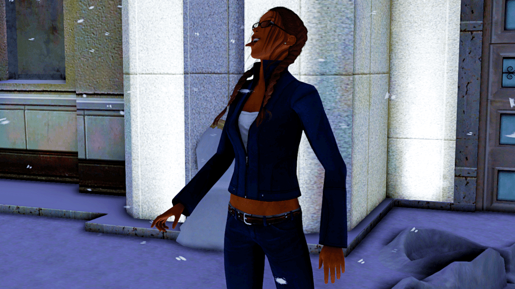 Meanwhile, outside, her best friend Johanna King, is having a great time sticking her tongue out to taste the snowflakes. 😆