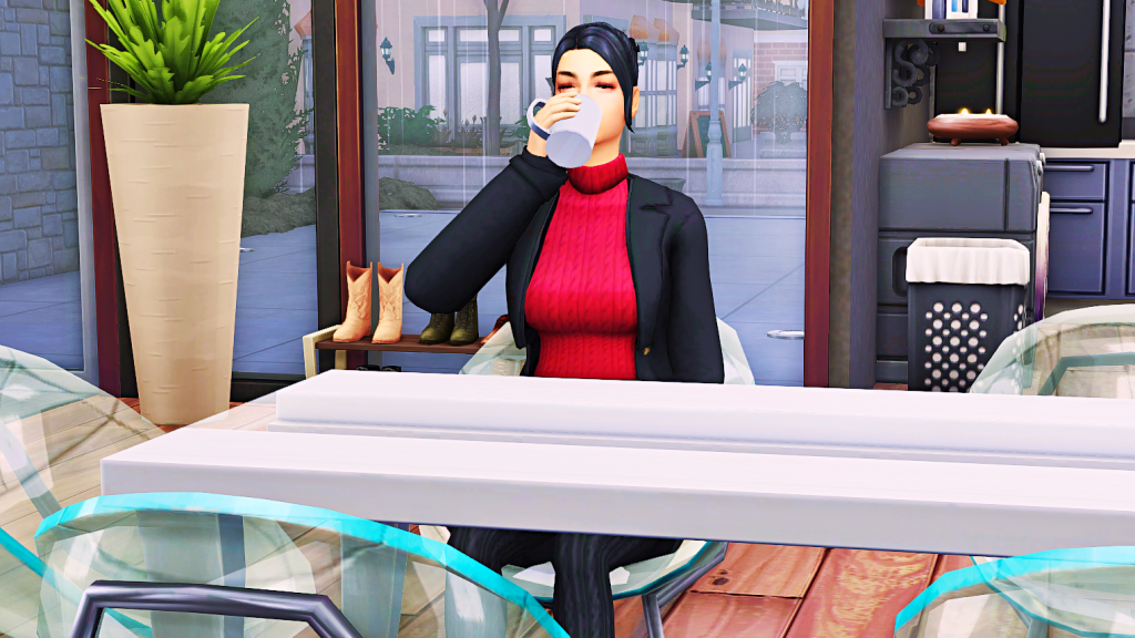 Keira, dancing alone to distract herself. Note the expression on her face, the same gestures Allan makes when he dances. We don’t know who copied who, but there’s no doubt she and Al would be a perfect couple… if he wasn’t with Zoe, that is.