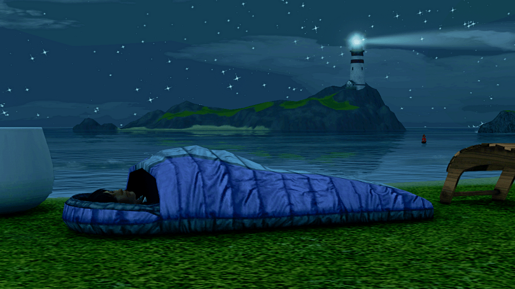 Locke and Felicity had only one son, Fulton, who we see here ready to spend the night on the beach in Sunset Valley.