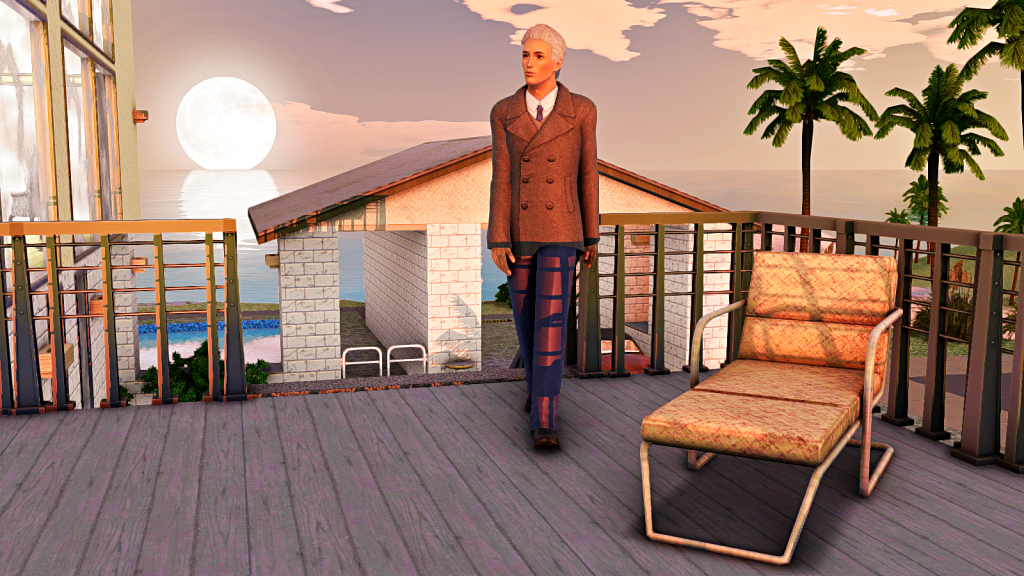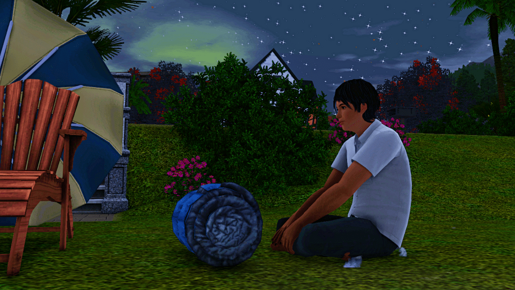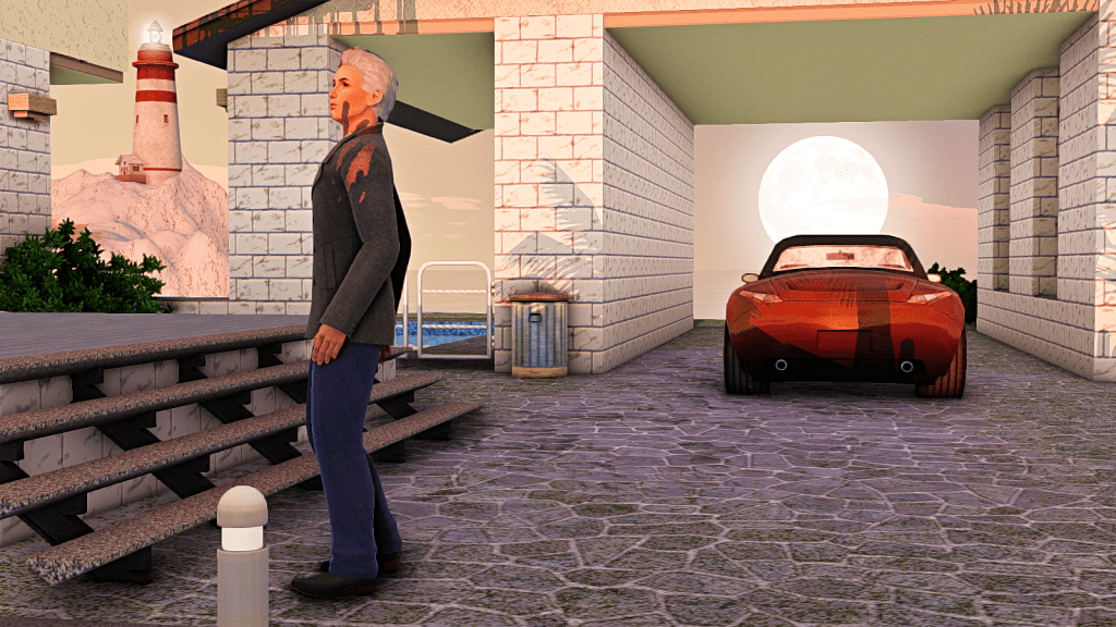 Anyway, here we see Locke, returning home after a long night in the valley. We don’t know exactly where he’s coming from, whether it’s work or a party. Locke works in Professional Sports, he’s currently a League MVP (Level 8), his traits are Good Sense of Humor, Technophobe, Vehicle Enthusiast, Excitable and Artistic. Quite a combination!