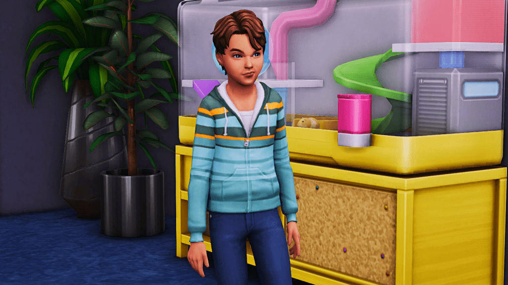His only concern for now is not being able to continue playing with his little pet cause he has to do his homework.