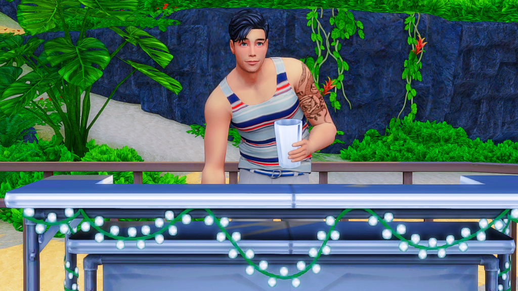 Relax everyone, he’s mixing up a non-alcoholic drink. There’s no alcohol anywhere in this building. (And the tattoo is fake too, because I changed it afterwards). 😄