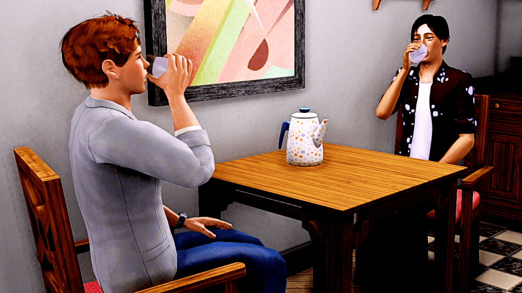 After lunch they drank only water. Tomorrow is a work day, so they cannot drink alcohol. They couldn’t drink tea either because the kettle didn’t work, (for a change).