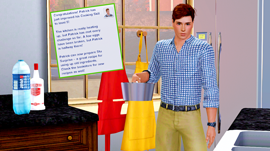 At home, things are also going great for Patrick, as he has managed to increase his Cooking skill.
