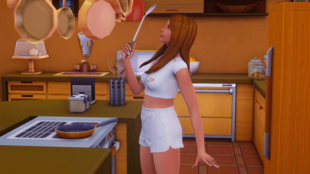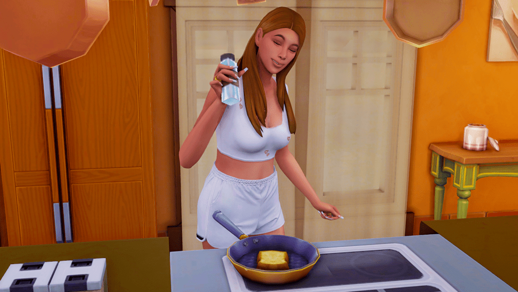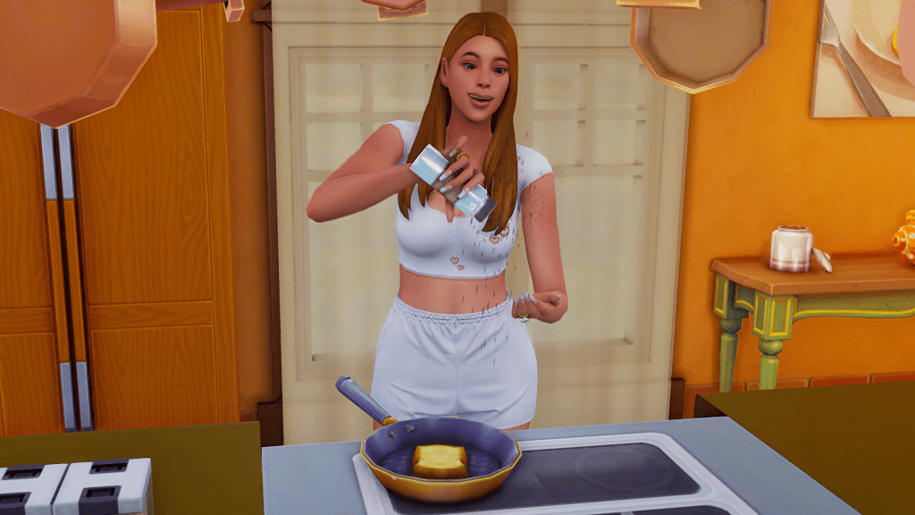 Lukas leaves the kitchen for a moment; Zoe continues to prepare the pancakes. You can tell she has great fun cooking.