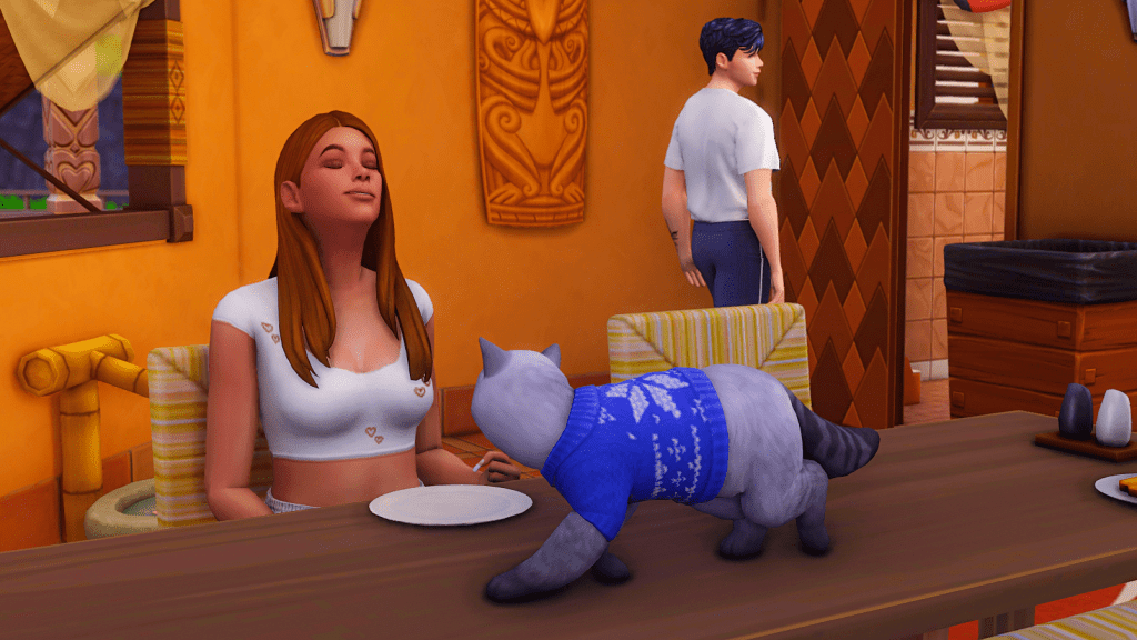 Aaand Apollo is climbing on the furniture again, Zoe clearly doesn’t like it, but there’s nothing she can do. He’s a very spoiled cat; he does what he wants. By the way, where is Allan heading for in such hurry? 🤔