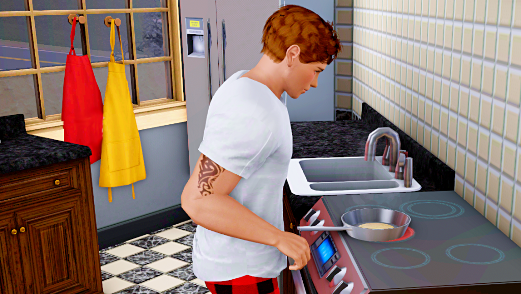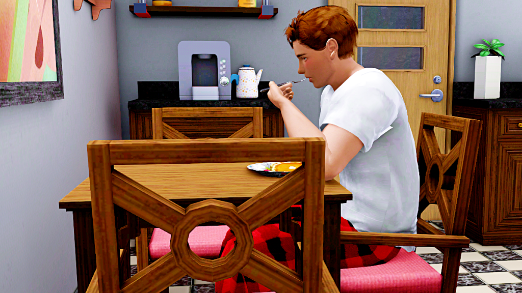 Anyway, he goes straight to the kitchen, he’s starving because with all the drama of last night’s meeting, he went to bed without having any supper.