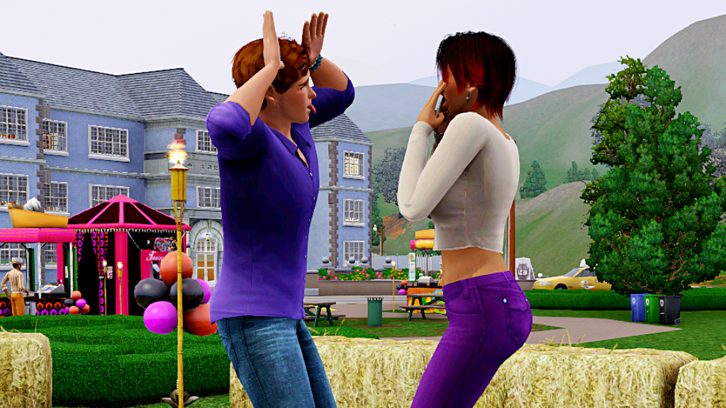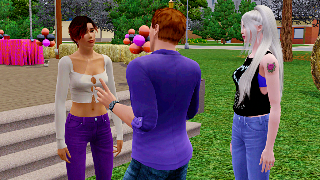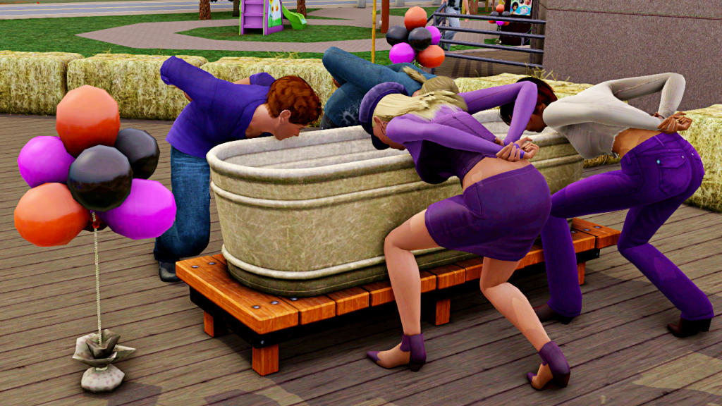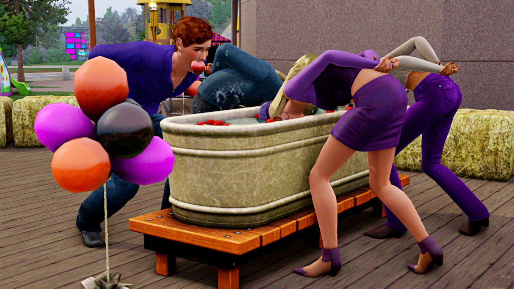 After the very brief political debate, Patrick and Suzy met up with Bianca and went to play some seasonal games, such as the classic apple bobbing.