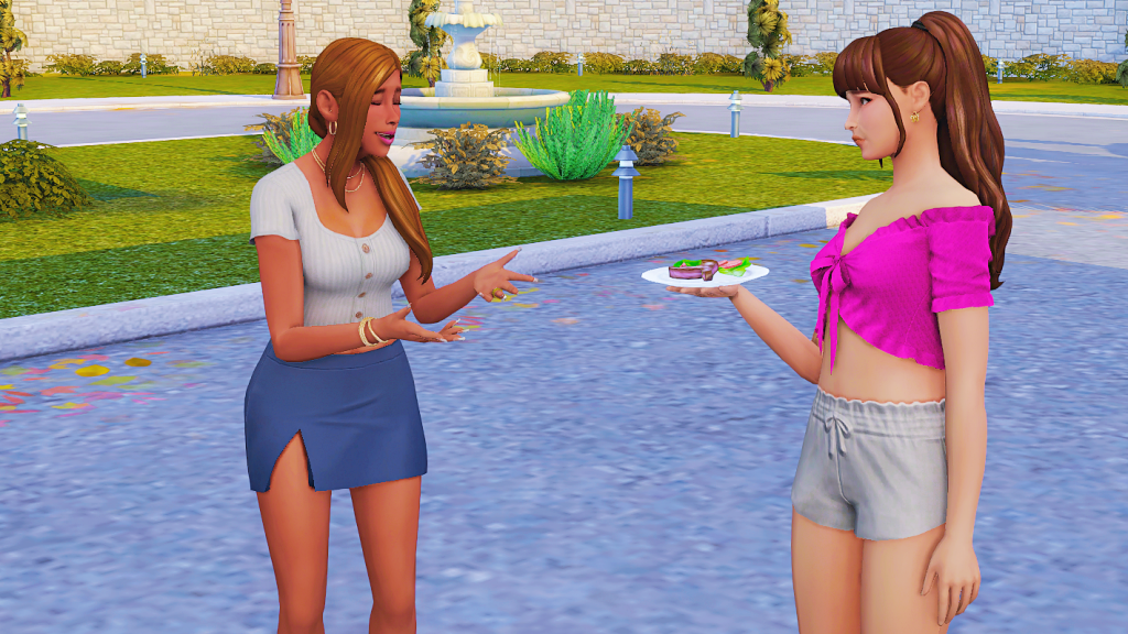That ‘point’ was the next day, shortly before Allan left for the Plumbob Studios – of course. There is almost no time, but the least he can do after interrupting Zoe’s fun is to listen to her complaints and demands, so he braces himself for it.