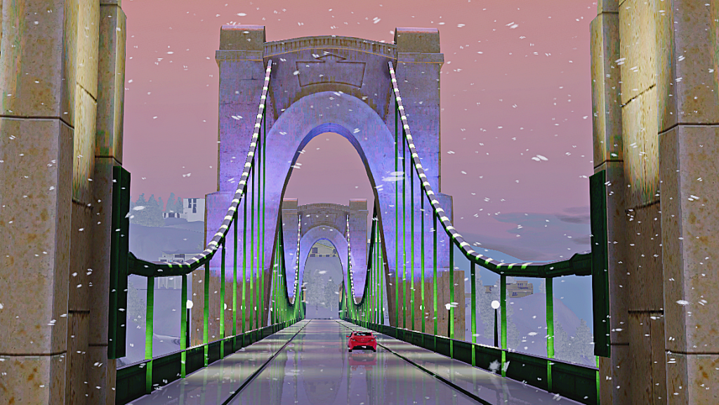 Which means driving to the other side of the bridge in heavy snow.
