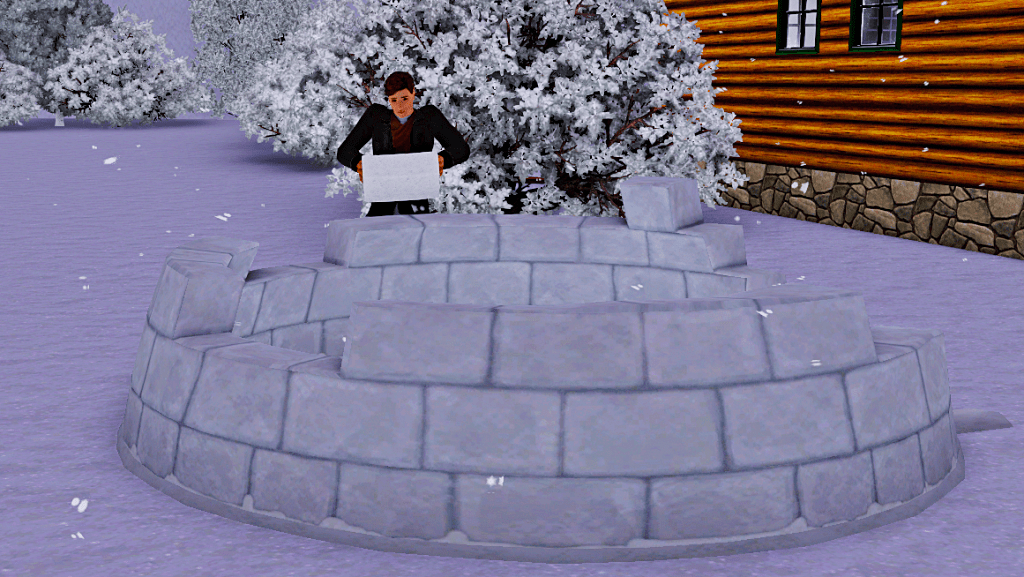 Jun is running late, it must be because of the snowfall. Pat remembered the igloo he had seen on his way home from work and decided to build one himself to kill time.